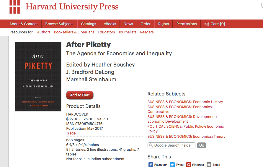 Thomas Piketty’s Capital in the Twenty-First Century is the most widely discussed work of economics in recent history, selling millions of copies in dozens of languages. But are its analyses of inequality and economic growth on target? Where should researchers go from here in exploring the ideas Piketty pushed to the forefront of global conversation? … Continue reading “After Piketty” at Harvard University Press